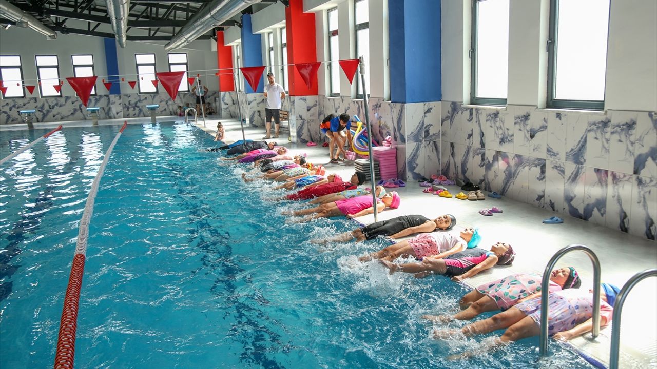 Vanlı çocuklar yarı olimpik havuzda yüzme öğreniyor