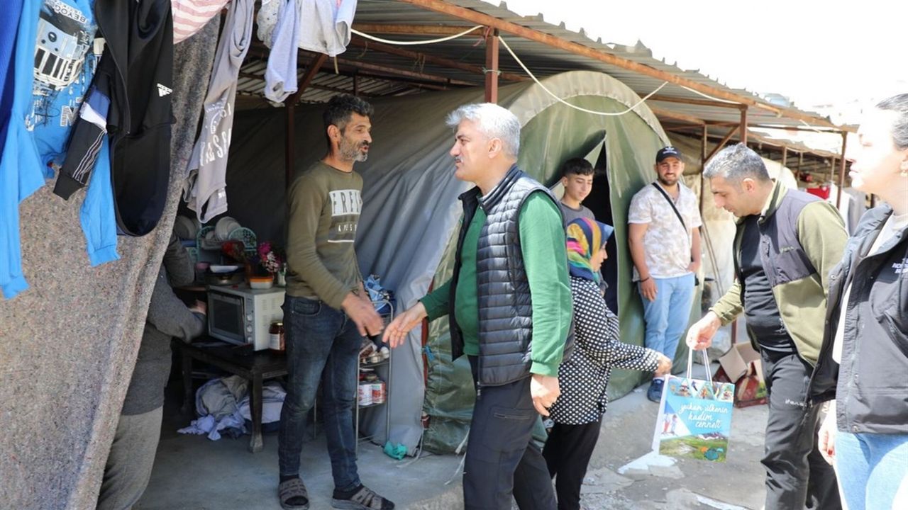 Erzincan Valisi Mehmet Makas, Hatay ili Defne ilçesinde afetzede vatandaşlar ile bayramlaştı.