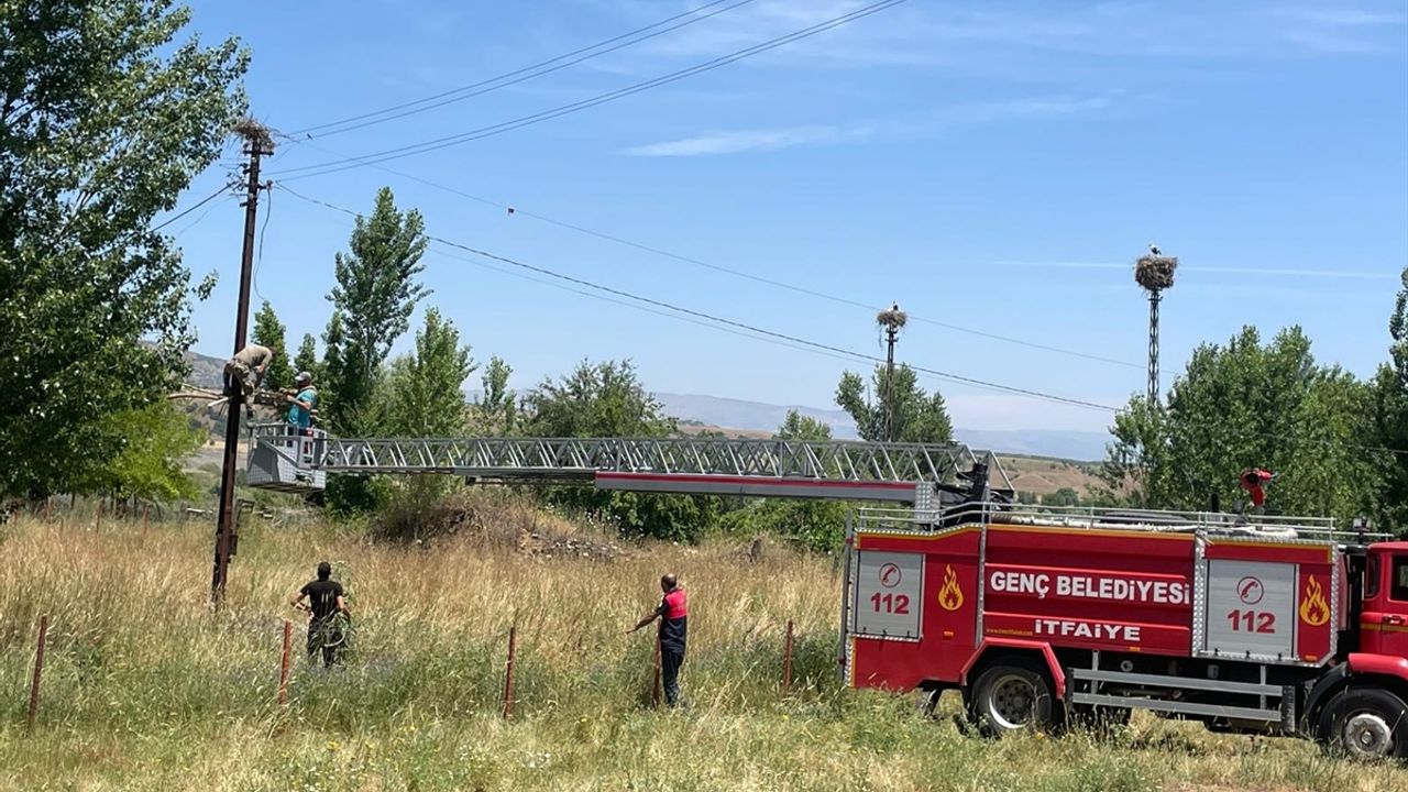 Bingöl’de itfaiye ekibi yıkılan leylek yuvasını onardı