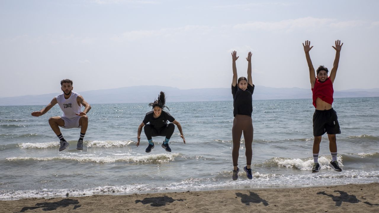 Van Gölü’ndeki kumsalda BESYO ve POMEM sınavlarına hazırlanıyorlar