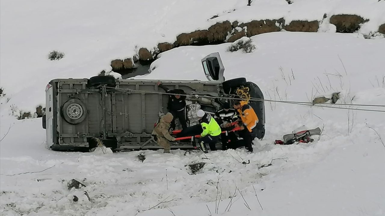 Hakkari’de şarampole devrilen kamyonetteki 7 güvenlik korucusu yaralandı