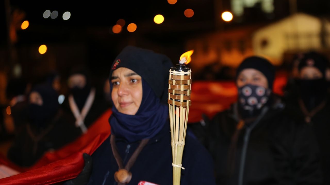 Erzurum'un Şenkaya ilçesinde, Sarıkamış Harekatı'nda şehit olanlar anısına Türk bayrağı eşliğinde fener alayı gerçekleştirildi.