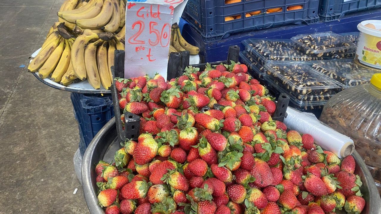 Erzincan’da geçtiğimiz hafta Pazar tezgahlarında kilosu 400 lirayı bulan çilek, yeni haftaya pazarda 250 liraya alıcı buldu. Kırmızı renginden uzak…