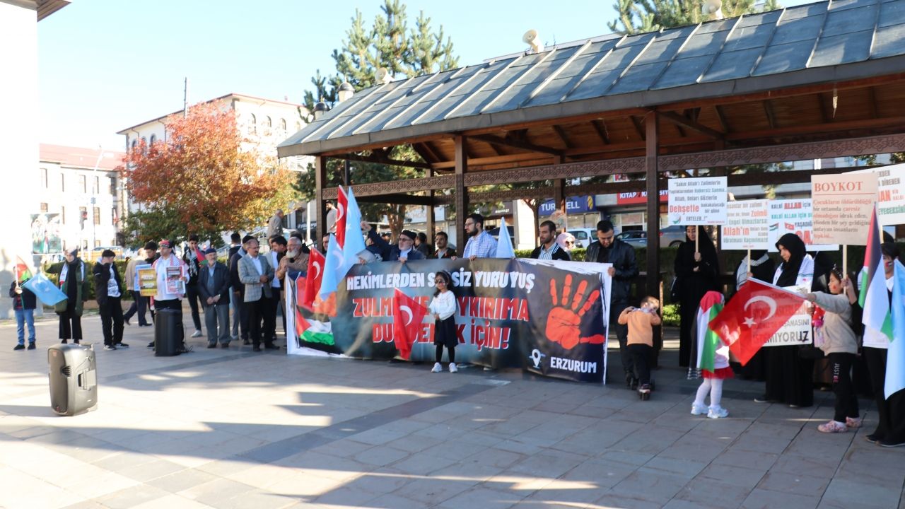 Erzurum'da görev yapan hekimler ve sağlık çalışanları, İsrail'in Gazze'ye yönelik saldırılarını protesto etmek için sessiz yürüyüşlerini 63. haftasında sürdürdü.