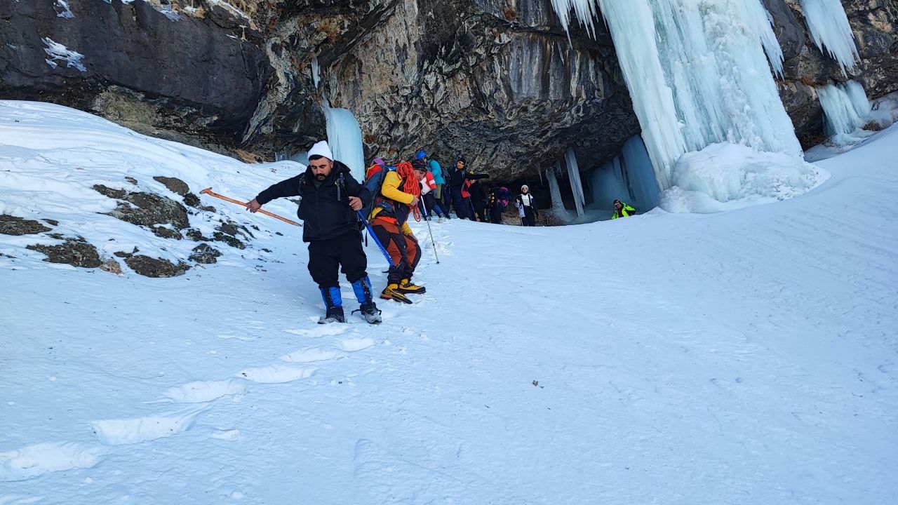 Van’da Dağcılar, Erek Dağı’nda Buz Tutmuş Sütun Şelalesi’ne Tırmandı
