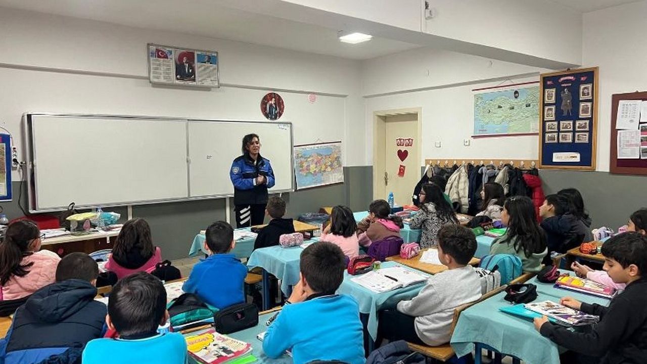 Erzincan Emniyet Müdürlüğü ekipleri, 735 öğrenciye trafik kuralları ve güvenli internet kullanımı hakkında bilgilendirme yaptı.