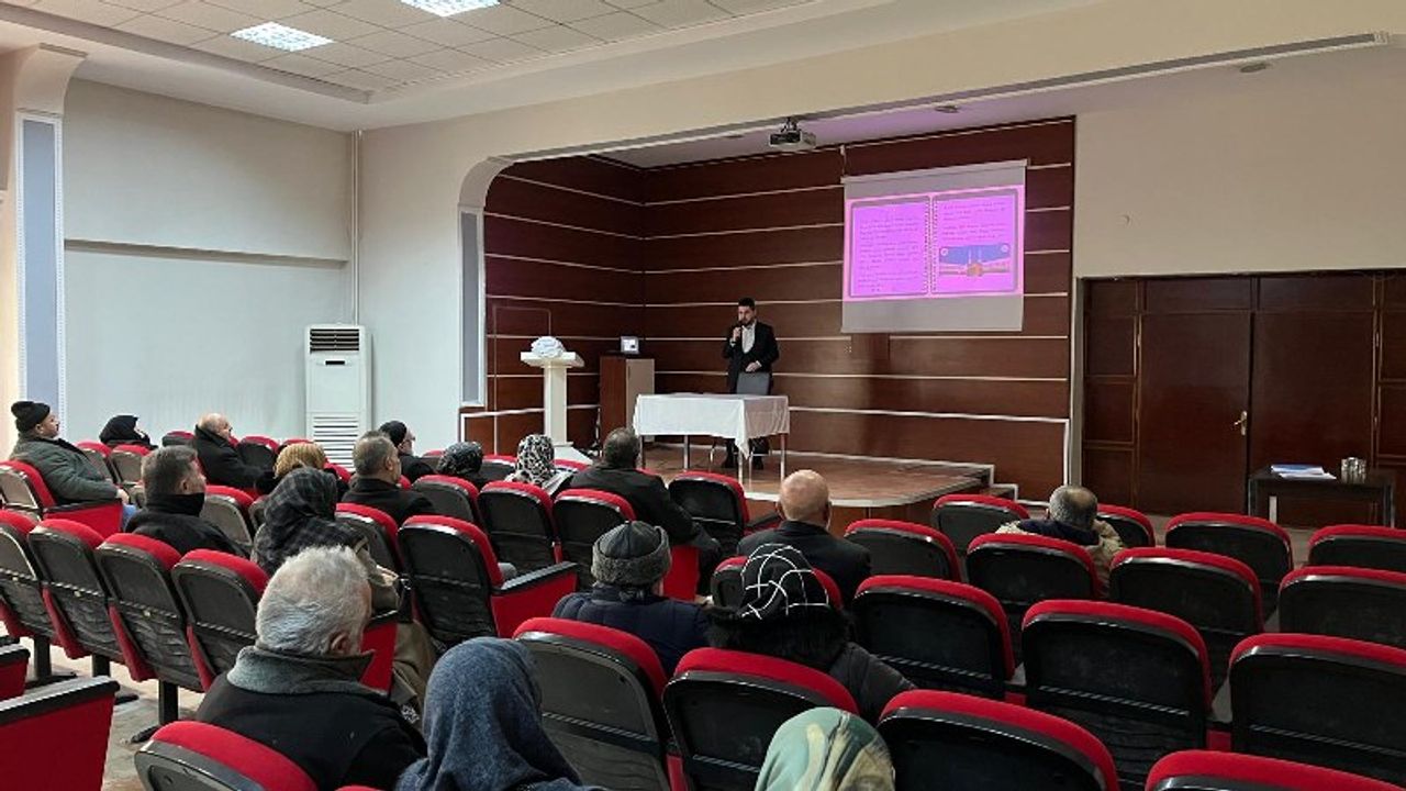 2025 yılı Ramazan Umresi için Erzincan'dan kutsal topraklara gidecek 24 kişilik kafileye, İl Müftülüğü tarafından Fuaye Salonu'nda umre semineri verildi.