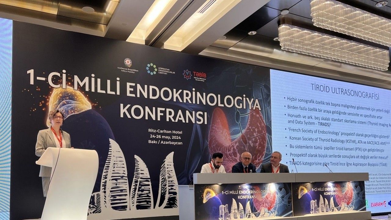 Acıbadem Kent Hastanesi Endokrinoloji ve Metabolizma Hastalıkları Uzmanı Prof. Dr. Mehtap Çakır, Azerbaycan Endokrinologlar Cemiyeti’nin davetlisi olarak gittiği Bakü’de, 25 Mayıs Dünya Tiroid Günü’nde “Tiroid Nodülüne Yaklaşım” konusunda sunum yaptı. 24-26 Mayıs 2024 1. Azerbaycan Ulusal Endokrinoloji Kongresi kapsamında gerçekleşen konferansta Prof. Dr. Çakır, tiroid hastalıklarının bütün dünyada endokrinolojide en yaygın görülen problemlerden biri olduğuna dikkat çekti. Son Avrupa Tiroid Birliği kılavuzunda, tiroid nodüllerinin erişkinlerde yüzde 60 oranında bulunduğunun rapor edildiğini kaydeden Prof. Dr. Çakır, konferansında şu noktalara dikkat çekti: