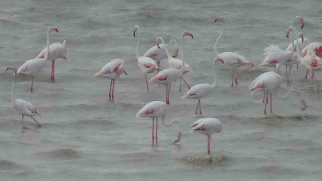 Van Gölü Havzası’nda bulunan sulak alanlara her yıl belirli dönemlerde renk katan flamingoların bu yıl yine geldiği Erçek Gölü kıyısında görsel şölen başladı.