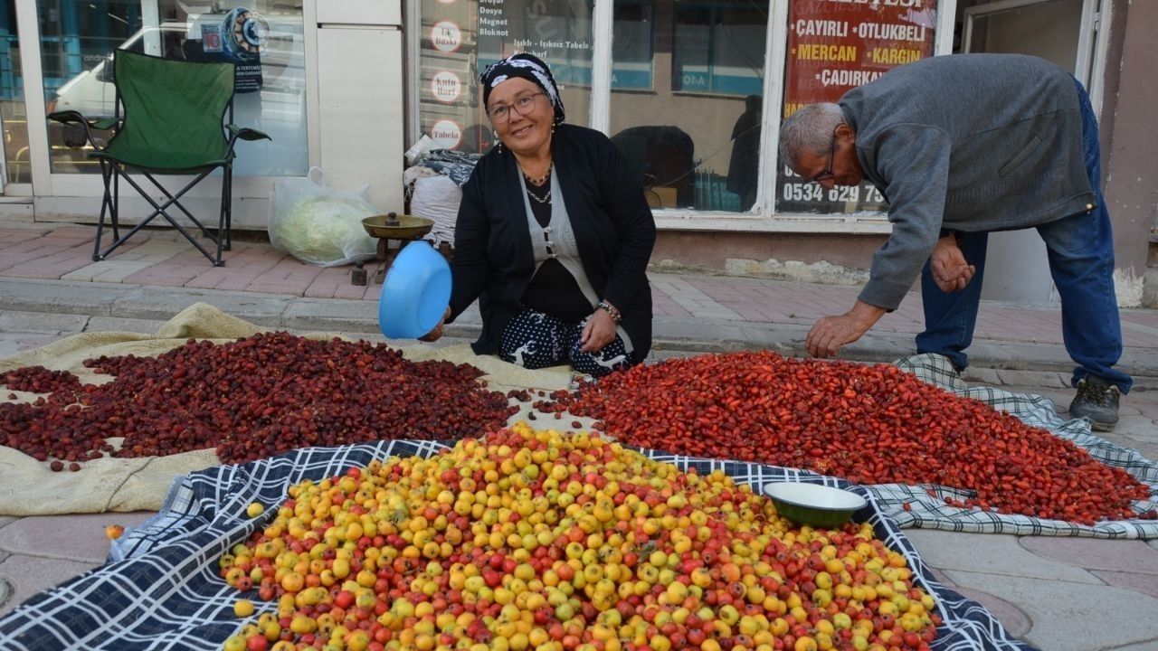 Erzincan’ın Tercan ilçesinde bazı vatandaşlar, dağlık alanda yetişen alıç, kuşburnu, gibi doğal meyveleri toplayıp pazarda satarak, aile bütçelerine katkı sağlıyor.